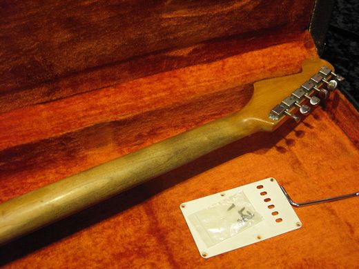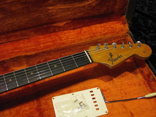 1964年製ストラトキャスターが入荷しました。ネックデイト64年10月、クレイドット、ハカランダ指板、グリーンガードのPre CBSスペック!入荷後にリフレットを行いましたので演奏性は大変良好です。3個ともグレーボビンでリアピックアップはヘヴィーフォームバー被膜、フロント/ミドルはエナメル被膜コイルの混載となっております。ヴォリュームポットのみ’72年製へ交換。弾き込まれたとても音の良い個体です。ウエイトは3.29㎏と軽量。バックパネル、アームバー、オリジナルブラックトーレックス付き