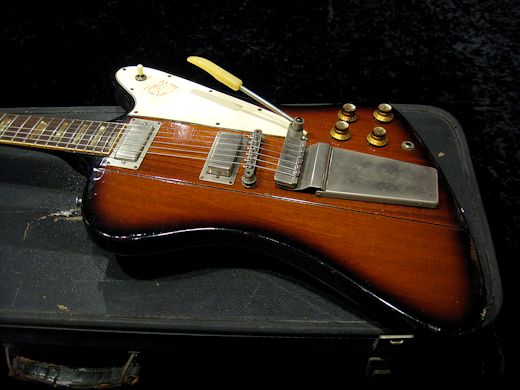 1964年製ファイヤーバードVが入荷しました。Tune-o-matic bridge、Deluxe vibrate、Trapezoid inlayの仕様で人気の高いFirebird V。今回入荷分はネッククラックやジャック周りの木部補修の無いグッドコンディションです。リフレット、ナット交換済みでネックはストレート。パワフルなフロントと超攻撃的な鋭いトーンが持ち味のリアピックアップのサウンドはファイヤーバードでしか出せない唯一無二のもの。製造期間たった2年、本数も少ない貴重なリバース型のファイヤーバードVです!オリジナルハードケース付き