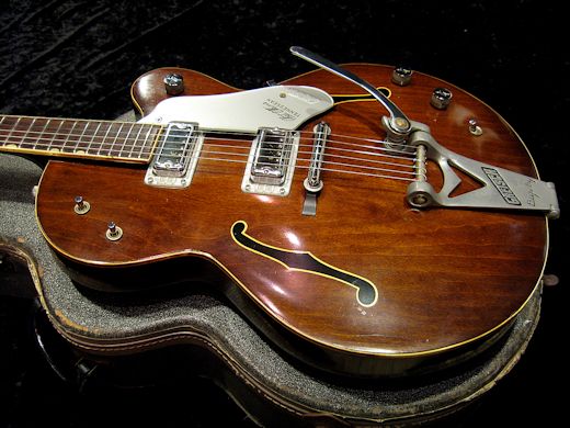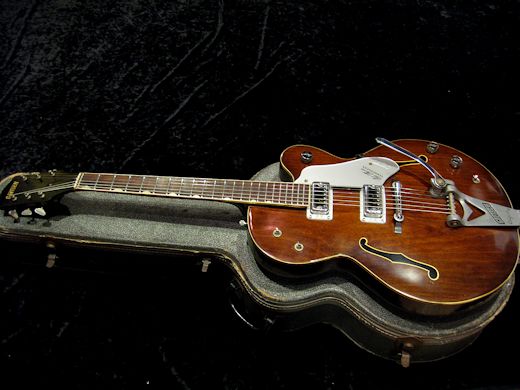 1964年製グレッチ テネシアン入荷しました。有名ミュージシャンの使用で人気の高い年式。色味は濃いブラウンがしっかり残っていてとても格好良いギターです。一部バインディングは剥がれ止めのリペアが行われてますが演奏には支障ございません。オリジナルハードケース付