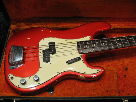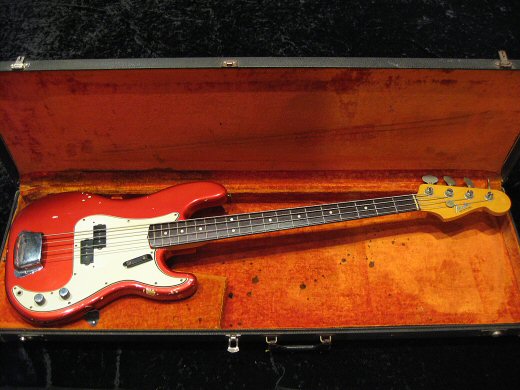 フルオリジナル!キャンディアップルレッドの1965年製プレシジョンベースです。黒光りしているハカランダ指板やグリーンガードなどPRE CBSスペックの65年初期物。トータルコンディションも抜群です!!オリジナルハードケース付き