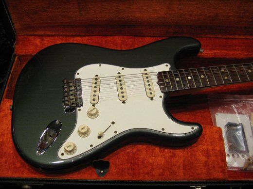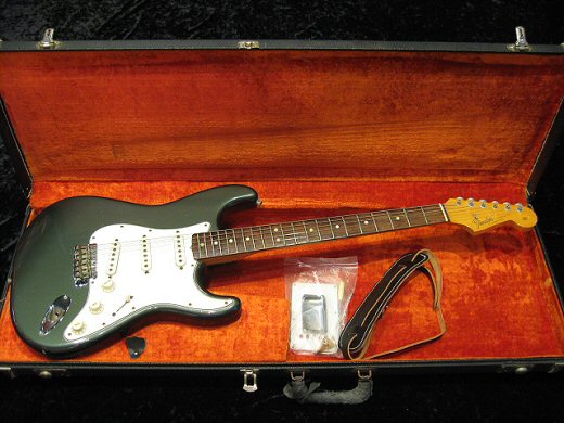 スパーレアカラー&ニアミント!!チャコールフロストの1965年製ストラトです。この年からカラーチャートに載った色でスモールヘッドでのこのカラーは極めてレアです。半田バージンで100%フルオリジナル、トレモロカバー、ストラップまで付属致します。オリジナルハードケース。