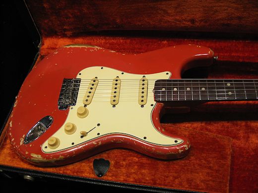 Original Fiesta Red!1965年製ストラトキャスターが入荷しました。弾き込まれたリアルエイジングの超クールなフェスタレッドのストラト。ハカランダ指板のネックデイトは64年12月、ポットデイト65年1週目、ピックアップは65年2月。リフレット、ナット交換済みで弾き易いセットアップになっています。ワイドレンジでとても抜けの良いサウンドです。大人気カラーでオリジナル度も高い1本、お見逃しなく!オリジナルハードケース付き