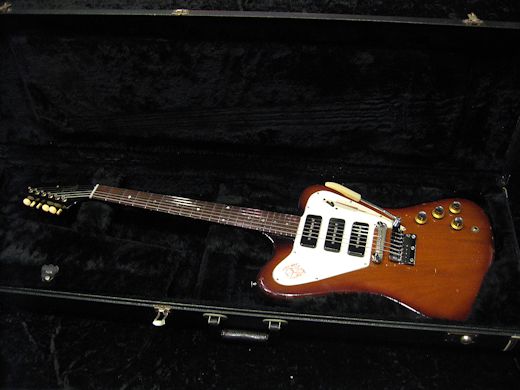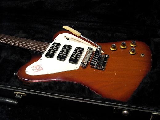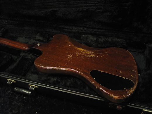1965年製ファイヤーバード3の入荷です。ノンリバース型のファイヤーバード、3発のP-90にマホガニーボディ、ネックとのコンビネーションで図太いトーンが魅力のモデルです。今回入荷分はジョイント付近のリペアに伴うネックのみの塗り直しが入っているため相場よりお安くなっております。多少のパーツ交換がございますがアッセンブリーはオリジナルです。工房できっちりとメンテが行われていてプレイングコンディションは抜群の実戦機!!型抜きのしっかりしたハードケース付き