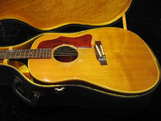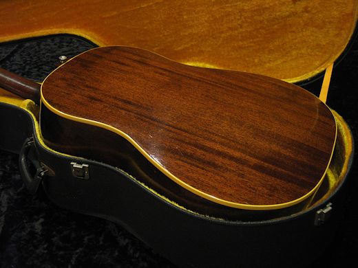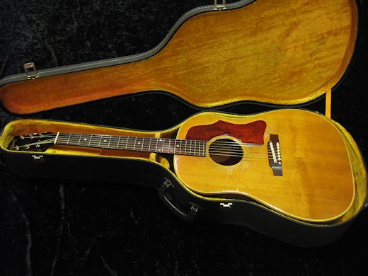 激鳴りの1本。1965年製J-50 です。42ミリワイドネック、ハカランダ指板の64年スペックの65年製。年式なりの弾き傷やペグがシングルラインクルーソンへ交換、エンドピンジャック加工跡(現在は穴埋め後にストラップボトンを取り付け)ございますがプレイコンディションは大変良好です。サウンドはこれぞ”当り”のギブソンと言える豪快な鳴りが楽しめます。ストレートネック、フレット残あり。ハードケース付き