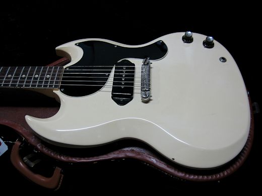 コレクター放出!Near MINTの1965年製SG Junior ポラリスホワイト入荷です。こちらは65年前期仕様のワイドナット/ハカランダ指板。100%オリジナル、スーパーサウンド!!オリジナルチップボードケース付