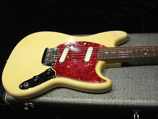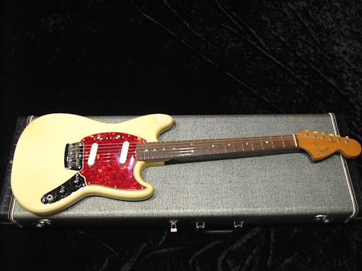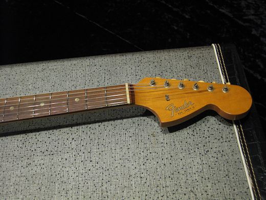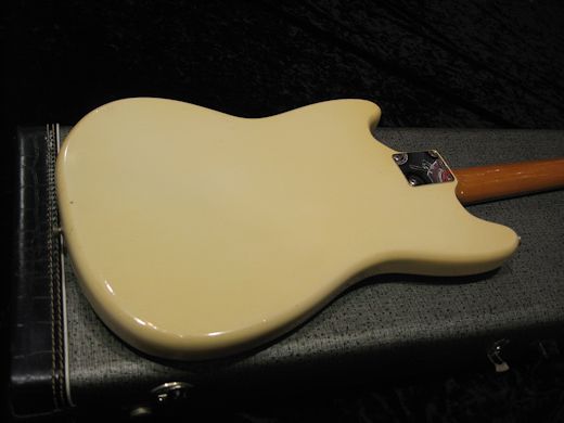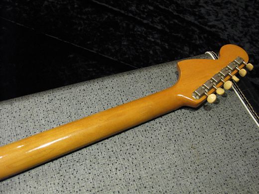 スラブボードの1966年製デュオソニックⅡ入荷しました。オリジナルホワイトにこの時期のみのスラブ貼り指板のデュオソニックです。ピックアップはレースセンサーへその他ジャック、スイッチの交換。リフレット済みで演奏性は抜群!キャビティ内導電塗料添付で更なるノイズ対策が行われています。ラッカー塗装のネックの質感もグッドです。オリジナルハードケース付き