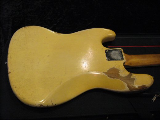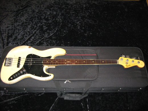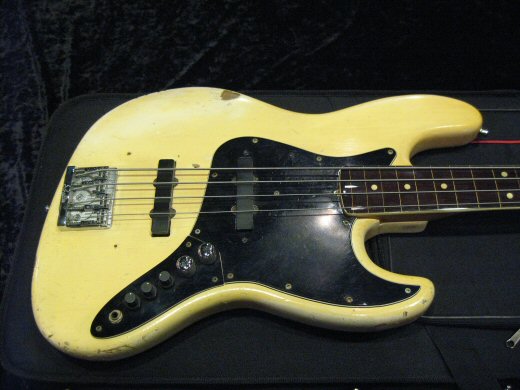 数々の改造が施されたオリジナルホワイト&マッチングヘッドの’66年製ジャズベース。先ず指板をフレットレス加工、EMGピックアップにアクティブコントローラー搭載、ブリッジはシャーラー製。ボディは無加工のオリジナルフィニッシュです!ネックフィニッシュとペグもオリジナルです。