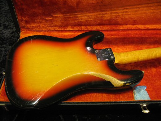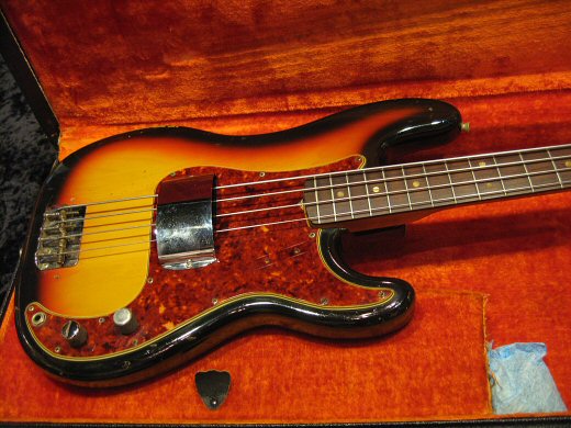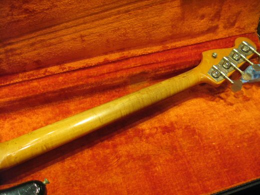 Nice Sound!1966年製プレシジョンベース入荷です。赤味も残っていて美しいサンバーストカラーでネックはバーズアイやフレイムが入っています!!リフレット、ナット交換のみであとはオリジナルパーツです。ロッドは両方向へ余裕がございますし現状適正な弦高です。NECK DATE 5JAN66C、POT DATE 137 6542×2、PICKUP DATE 2/66 (GRAY BOBIN)。今回売主様のご厚意でお買い得な価格になっております。お早めに!!オリジナルハードケース、ピックアップフェンス付属。