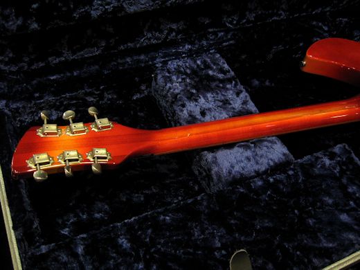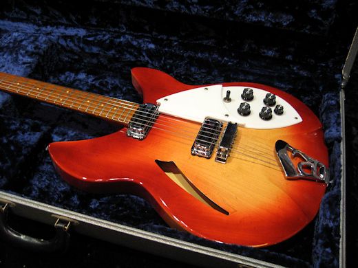 SUMMER SALE!!通常価格378000→324000!1966年製リッケンバッカーModel 330 美品です。塗装の艶、色抜けの無いファイヤーグローカラー、極上のコンディションが保たれた人気機種#330です。アッセンブリーはポットデイトが全て’66年、コンデンサーもオリジナルです。ネックは現状ストレートで弾き易い弦高でセットアップ済み、ロッド余裕もございます。トースターピックアップの軽快な鳴りが味わえるヴィンテージリッケンバッカーお見逃しなく!!オリジナルハードケース付き