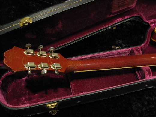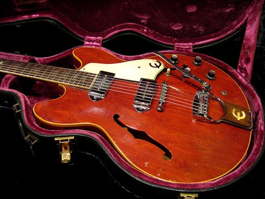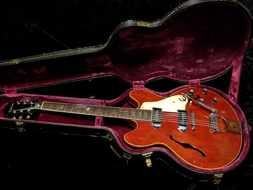 1967年製エピフォンカジノ入荷しました。16フレットジョイント、メタルトップノブ、トレモトーンヴィブラート搭載の67年前期モデル。ナロー期のネックになりますが程よい厚みがあり、さほど細さを感じない良いグリップ感です。リフレット、ナット交換済みで演奏性は大変良好。オリジナルABR-1クロームメッキブリッジ、ダブルラインクルーソンペグ、オリジナルアッセンブリー。Eマークは貼り直されてる可能性がございます。プラグイン時の乾いたサウンドと生音でもアコースティック感の強い気持ち良い鳴りを楽しめます。ハードケース付き
