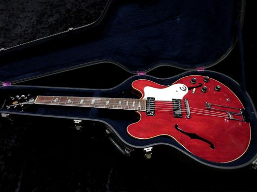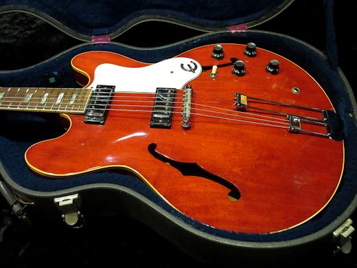 Good Condition!!1967年製エピフォン リヴィエラ入荷しました。小傷はあるもののかなりの美品コンディション!アッセンブリーは67年ポットデイト、フレット、ナットまで全てオリジナルをキープ。サドルのみデルリン素材の物へ交換されております。セミホロー構造のボディとマッチングの良いミニハムは各弦の分離が良くテンションコードの響きが心地よいサウンドの1本、お見逃しなく!程度の良いオリジナルハードケースが付属致します。