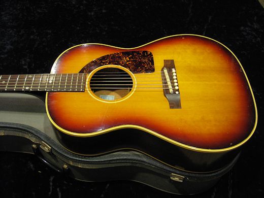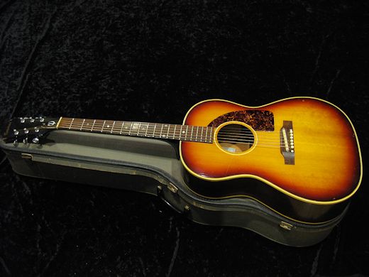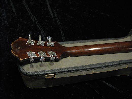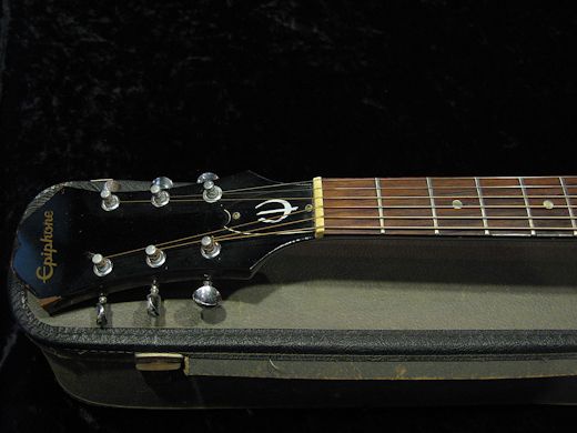 1968年製エピフォン コルテッツ入荷しました。ギブソンではB-25にあたるスモールボディのモデルで、1ピースマホガニーネック、トップベリーハカランダブリッジの’68年前期物です。ボディバックに1か所のクラックリペアは工房できっちり補修済み、ネック状態はストレートでフレット残もあり、全体的に良いコンディションをキープしております。鳴りが良く、枯れたニュアンスも持ち合わせている良い音の個体です。ギブソンB-25よりリーズナブルでコストパフォーマンスの高いお値打ち品!オリジナルチップボードケースが付属します。