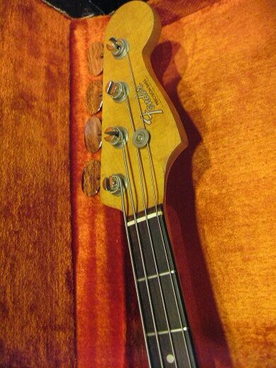 ’68年製プレベです。ナローピッチへ使用変更後のモデルですので幅広ネックが苦手な方へお勧めです。ネックの塗装はラッカーです!トラロゴが格好よいですね。オリジナルハードケース。