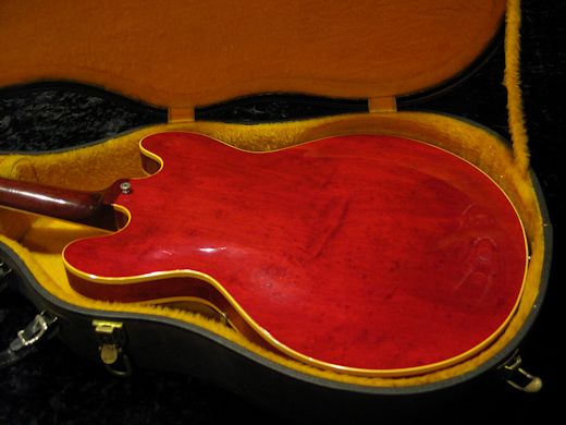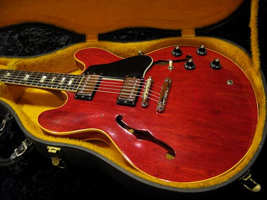 Clean ! STP改の1968年製ES-335TDC入荷しました。おそらくハカランダと思われる真っ黒な指板に美しいチェリーレッドのコントラストがCool!ストップテールピースへコンバートされた鳴りはタイトで低音の腰が強く出ています。ナンバードPAF2基、ポットデイト68年20週目、コンデンサーはオレンジドロップが付いております。リフレットされたばかりでロッド含め、ネック周りはパーフェクトコンディション。即戦力のナイスギア!!取っ手交換されておりますがオリジナルハードケースが付属致します。