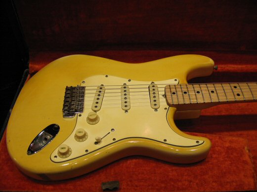 カスタムカラー&貼りメイプルネックの’69年製ストラトキャスターの入荷です。塗装状態の良いオリジナルブロンドフィニッシュ!ナット、フレット、多少の消耗パーツ交換ありの為大特価にて!オリジナルHC