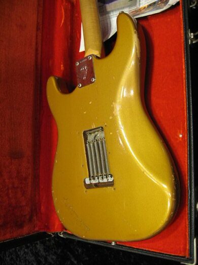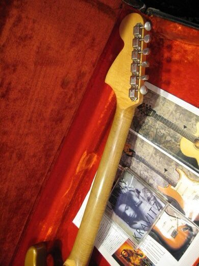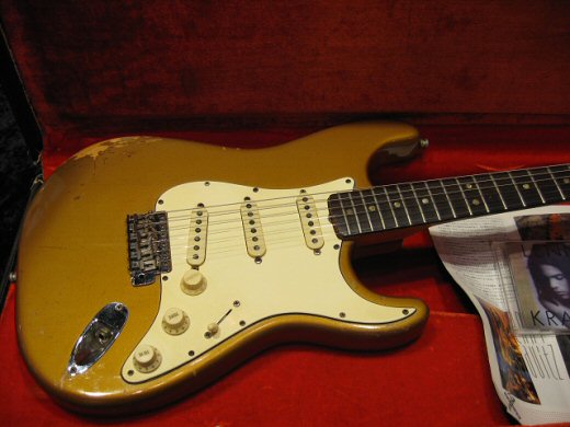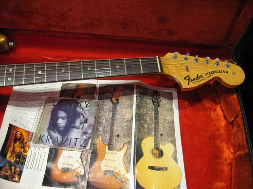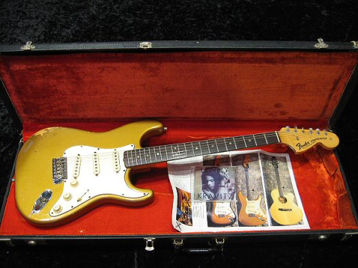 レニークラビッツ元所有品!ファイヤーミストゴールドの1969年製ストラトキャスターです。ラージヘッドでこのカラーは非常にレアです。ペグ、ポット交換や導電塗料などプロユースの改良が加えられていますがサウンド、ルックスともに抜群です!’70Sのブラックトーレックスケース付属。