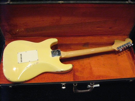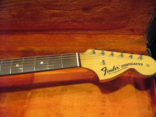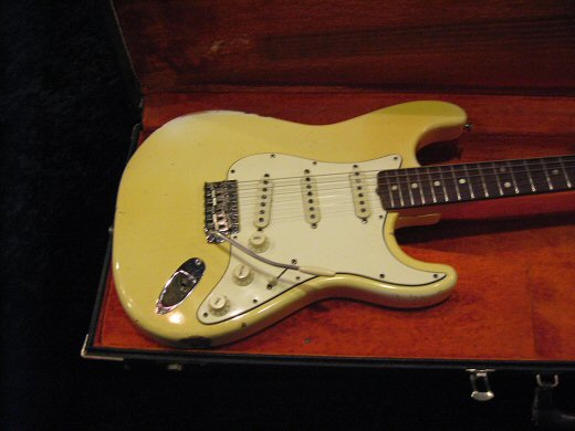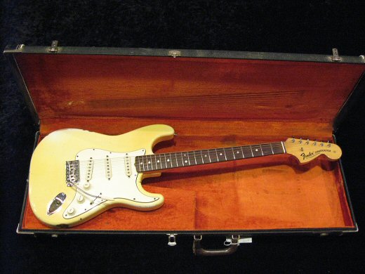 1969年製オリンピックホワイトのストラトが入荷です!リフレット、ナット交換以外は半田バージン全てオリジナル。マーシャル系のアンプで歪ませるとこりゃ堪らんですわ^^強烈に格好良いルックスしてます!!オリジナルブラックケース。
