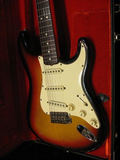素晴らしいコンディションの1969年製ストラトキャスター入荷しました。赤味が程よく残っており大変美しいサンバーストです。パーツはフルオリジナル半田バージンでピックアップデイト、ネックデイトともに’69年です。ポットデイトは’66です。リフレット済みで演奏性も抜群。ヘッド面のみ薄くオーバーラッカーされております。オリジナルハードケース付き、アームバー欠損。