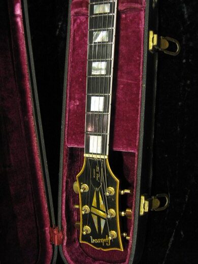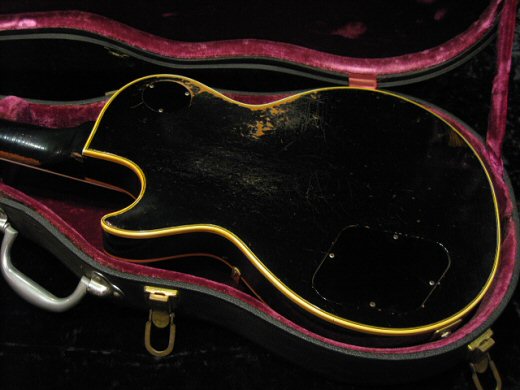 1P Mahogany Neck 1P Mahogany Back!68スペックの69年初期物!!レスポールカスタムです。ディープショイントではない点、ボディトップはセンター外しの2ピース、i dotが入ってませんが、68年製を色濃く残す嬉しいスペックです。フロントボリュームポット、ストラップピン、一部配線材とペグが古いシャーラーへ交換されておりますが主要部分はオリジナルです。リフレット済みで弾き易さは申し分なし、サウンドも抜群です!オリジナルハードケース付き