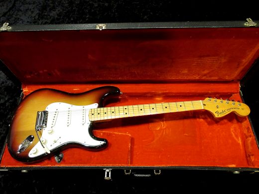 Live in Japanドンズバのウィズシンロゴ、1ピースメイプルネックの1971年製ストラトキャスター入荷しました。68年製ハリメ黒や72年製ナチュラルメイプル、74年製白ローズなどリッチーブラックモアが愛用してきたギターは数あれど、最もレアで本数の少ない71年製4点止め、ウィズシンロゴ、1ピースメイプルネックのサンバーストです。フルオリジナルアッセンブリーに加え素晴らしいコンディションの本機、コレクターグレードの貴重な1971年製ストラトキャスターお見逃しなく!!ブリッジカバー、アームバー、オリジナルハードケースが付属致します。