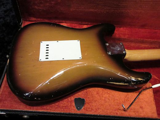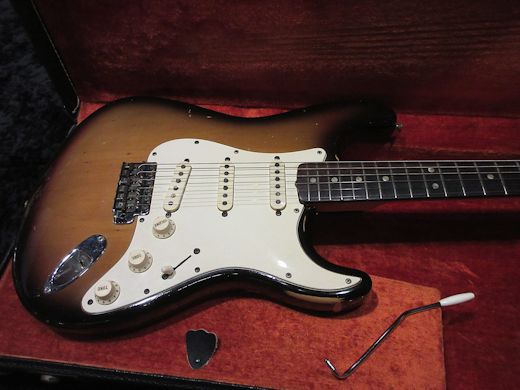 1971年製ストラトキャスター入荷しました。4点止めにウィズシンロゴのヘッドがかっこいいストラトです。ローポジションから太目のネックグリップは63年辺りのストラトに近い握り心地です。60年代後半から70年代初頭にかけてのストラトの特徴でもあるコンプ感の強いサウンドも魅力!ウエイトは3.38kgと軽量!サドルイモネジ、ポットの交換、ネック裏のクリアのみリフィニッシュ。ナット、フレットは交換済みでプレイヤビリティも高いお勧めのストラトです!!ノンオリアームバー、オリジナルブラックトーレックスケースが付属致します。