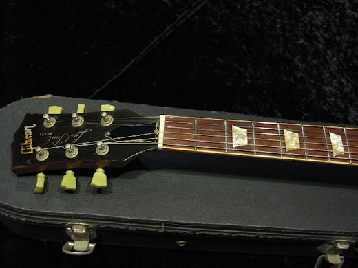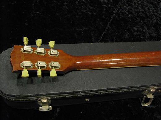 1971年製レスポール’58 Standard入荷です。スモールヘッド、ノーボリュートの1ピースマホガニーネックにメイプルトップの1ピースマホガニーボディと50年代と同スペックで製作された70年代前半のプレミアムリーシュー。今回入荷分はボディバックに塗装剥げやネック裏の一部オーバーラッカーが見受けられますがトップの塗装は非常に綺麗なゴールドをキープしています。アッセンブリーはオリジナルでペグ、ニッケルメッキのブリッジはパーツチェンジされております。リフレット、ナット交換済みで演奏性はとても良好。良材、グッドスペックの近年相場上昇中のモデルです!!ウエイト4.30kg。オリジナルハードケース付き