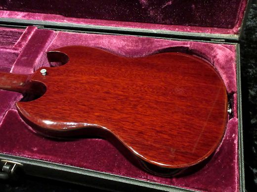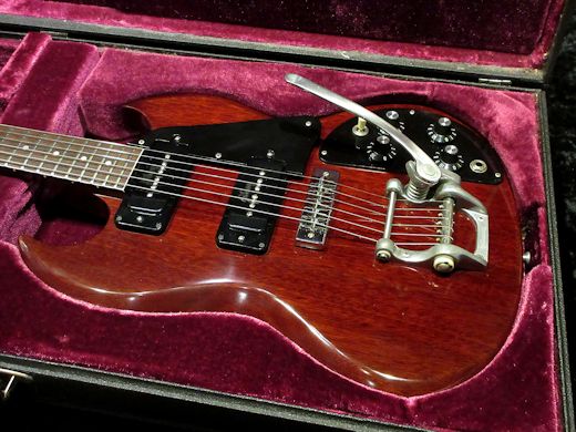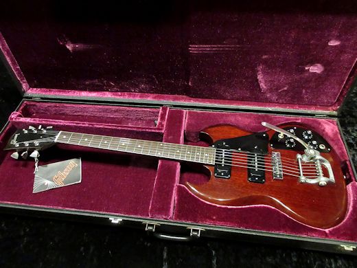 Near mint condistion ! 1972年製SG Pro入荷しました。生産期間が僅か1年ばかりと短命なレアモデルです。ブラックソープバーのP-90にGIBSONロゴ入りのビグスビーユニットが付いた精悍なルックスが魅力。オリジナルフレットの残量も問題なく、演奏性も良好です。ポットデイトは72年15週目。Tagとオリジナル長方形ハードケースが付属致します。