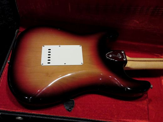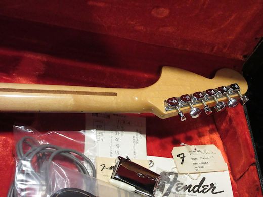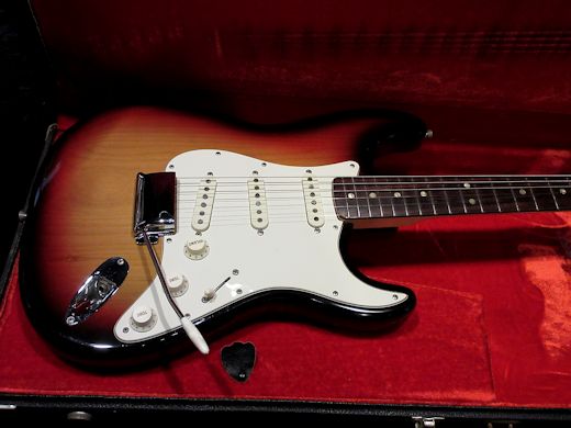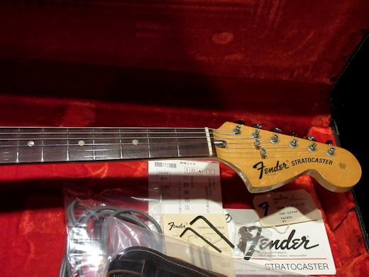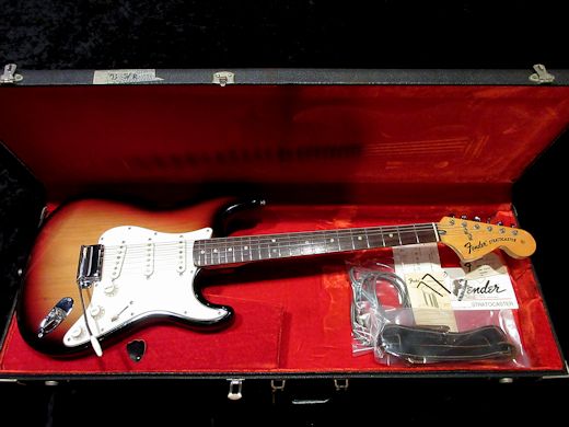 Extremly Clean & All Original 1973年製ストラトキャスター入荷しました。ビックリするほど美しいサンバーストの1973年製、貴重なローズ指板ストラトです。シリアルナンバー入り山野楽器の保証書、OWNER’S MANUAL、ストラップ、コード、ブリッジカバー、オリジナルアームバー、予備のスプリングが保存され、大事に扱われてきたことが伺える極上機。ポットデイト、ネックデイト、ピックアップデイト全て’73年。弾いても耳に痛くない倍音たっぷりのストラトサウンドをご堪能頂けます。ウエイトは3.43㎏。オリジナルハードケースが付属致します。