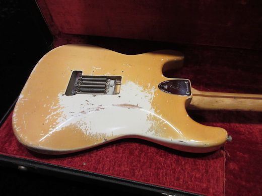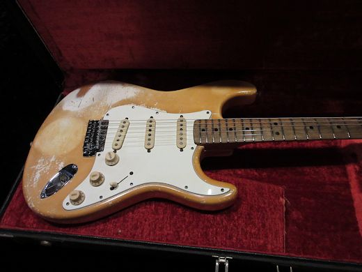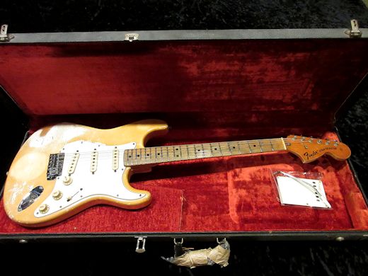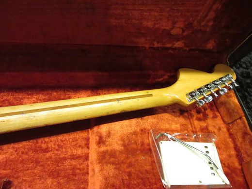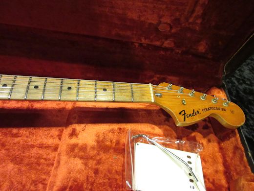 Cool !! 1974年製オリンピックホワイトのストラトが入荷しました。弾き込まれヘヴィレリック然とした雰囲気のアルダーボディ、スタッガードブラックボビンピックアップの’74年製ストラトです。パーツチェンジやステッカー跡はあるものの、リフレット済みで大変弾き易く、オーバードライブサウンドの抜けが素晴らしいストラトです。ポット、キャパシター、5点スイッチへ交換、3,4弦用ストリングガイド欠損。ウエイトは3.51kg。オリジナルハードケースが付属致します。