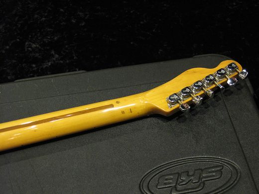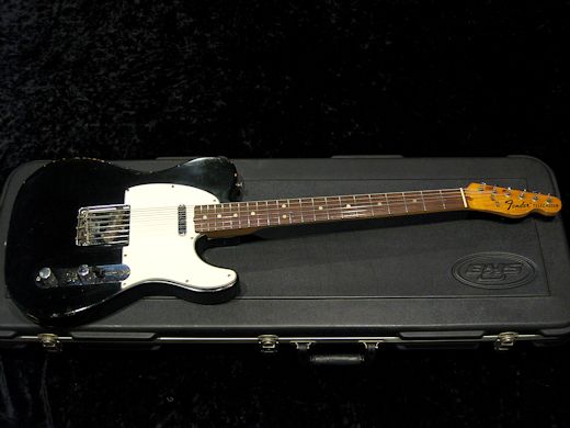 ブラックローズの1975年製テレキャスター入荷しました。ありそうで中々見かけない黒ボディ+ローズ指板ネックのテレキャスター、本器は黒ピックガードへ変更になる前の’75年前期のオリジナルホワイトガード仕様です。ボディにはウェザーチェッキングが入り風格のある佇まいを見せております。ウエイトは約3.8kgで70年代中期以降の物としては普通~やや軽めの重さになります。ローからハイまでバランスよく出ていてテレキャスターらしい煌びやかなサウンドです。リフレット、ナット交換済みで演奏性は大変良好、ハイパスコンデンサーはカットされています。リアピックアップマウントスクリュー交換とフロントピックアップはリワインドです。70年代とはいえヴィンテージテレのサウンドをご堪能頂けるナイスプレイヤーズギア!!SKB製ハードケースが付属致します。