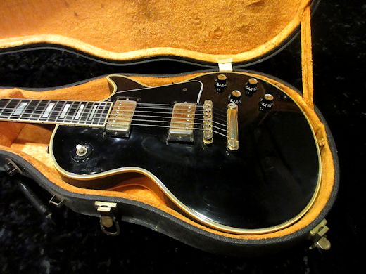 お待たせしました!重めのレスポールカスタムをお探しの方へ 1976年製Les Paul Customの入荷です。パンケーキボディにメイプルネック、刻印ナンバードPAF仕様のヘヴィーなカスタムです。メイプルネック期特有の腰の強いトーン、ドライブサウンドが最高に気持ち良いです。クリーンも意外と艶っぽくイケてます。トグルスイッチチップ、ピックガード(面取りの大きな’50sタイプ)のみパーツ変更。年式の割にはクリーンなコンディションを保っております。ウエイト4.85kg。ノンオリハードケース(取っ手破損)が付属致します。