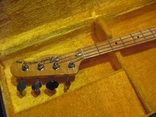 ’79年製テレキャスターベースが入荷しました。アンサンブルにとけ込む甘いトーンが良い感じです。ボディエンドにラッカーの溶けた跡がありますが全体的には非常に良いコンディションです!ノンオリジナルハードケース付属。