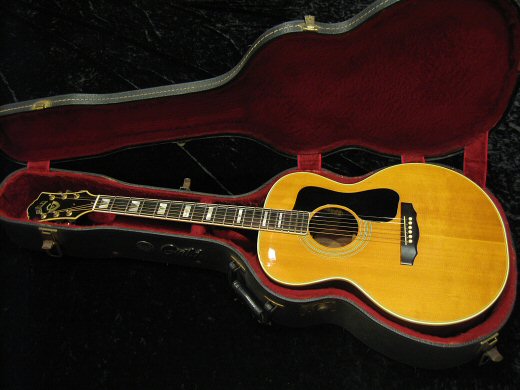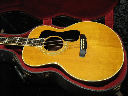 ポールサイモンで有名なギルドF-30R グッドコンディションで入荷です。インレイやゴールドパーツなど上位機種の装飾を取り入れた当時の限定モデルです。やや小振りなボディで体にフィットし見た目よりも扱い易いサイズです。ローズバックならではのハイの煌びやかさに加え低音のパンチ力も併せ持っています。弦高は低めでセットアップされております。傷も少なく年式を考慮すれば十分な美品レベルです!!オリジナルハードケース付き