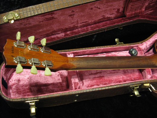 Like a ’50s!!経年変化と弾き込みでど迫力のルックス!レスポール30thゴールドトップです。渋いルックスに加え、乾いた抜けの良いサウンドも秀逸なナイスレスポール。数ヶ所のパーツチェンジがありますがそれをも感じさせないオーラの出ているギターです。リフレットされていますので演奏性も申し分なしです。アリゲータ柄の高級レスポールケース付き!