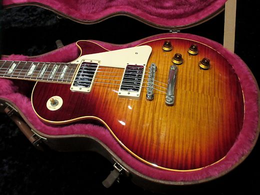 極上トップ!!1988年製レスポールリイシュー入荷しました。Pre Historicとして近年再評価されてきているヒスコレ前のレスポールスタンダードです。今回入荷分は美しいダークチェリーサンバーストで最上級クラスのトラ杢が見事な個体。ウエイトも4.00kgと軽量です。ポツ傷はありますがコンディションもなかなかのもの、リアピックアップはおそらくバーストバッカー#2へ交換、フロント側は裏にGibson刻印の入っているタイプが付いております。ヒスコレとはひと味違う80年代後期の逸品、お見逃しなく!オリジナルハードケースが付属致します。