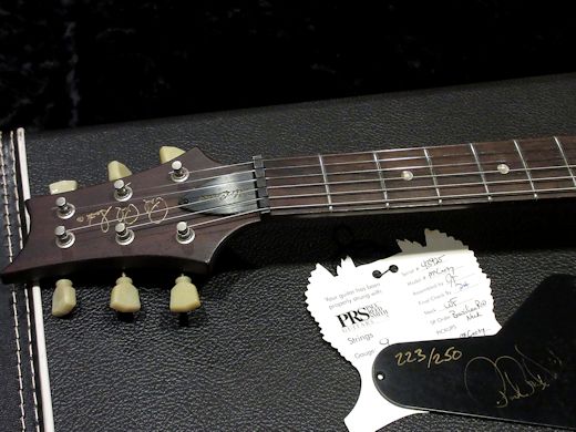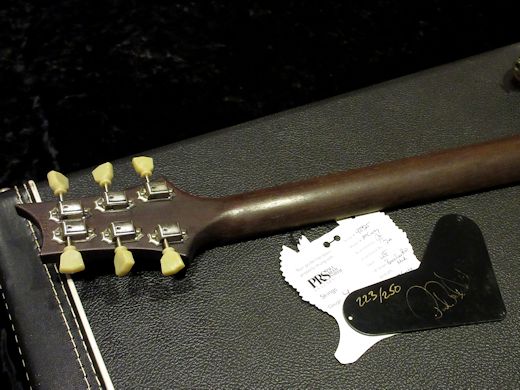 250本限定のマッカーティブラジリアンネックリミテッドの入荷です。貴重なハカランダを指板、ネックにまで採用した限定モデルです。フレックの入った硬質なハードメイプルトップにハカネックの組み合わせから放たれる芯が太く明瞭なトーン、独特な粘り感もある素晴らしいサウンドです。金属パーツに多少の経年感は見受けられますが、傷は少なく、フレット残も約80%は残っており、ネックはストレートな良いコンディションです。他ブランドでは真似のできない贅沢なスペックの限定モデル、お見逃しなく!オリジナルハードケース付き