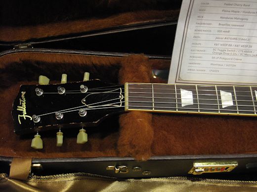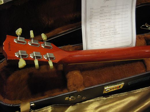 フラートーンリードソウル59久々の入荷!最高級グレードのVIP LINEです。指板にハカランダ、ボディバック&ネックにホンデュラスマホガニー、トップは硬質感のあるライトフレイムメイプルが使われております。ピックアップはK&T WEEPでヴィンテージPAFのニュアンスを見事に再現、アタック感や特にプレーン弦でのハーモニクスは50sライクな素晴らしいサウンドです。フィニッシュはRUSTED(AGED)、コンディションは抜群です。ウエイト3.98㎏、ナイスバランスです。オリジナルハードケースとサーティフィケーション付属致します。