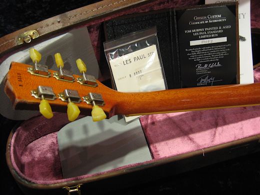 Limited Run!2019年製のマーフィーペインテッド&エイジド ゴールドトップの入荷です。色の配合からトム・マーフィー氏が携わり、ペインティングに迫力のエイジング加工が施されたスペシャルな1本。立体的なトップカーブに、従来のゴールドよりもワントーン抑えられた渋い色合いが絶妙な雰囲気を醸し出しております。搭載されている”E BUCKER”はアタック感や、やや控えめな出力等、オリジナルPAFに最も近いニュアンスの素晴らしい音色です!!ウエイトは3.69㎏と軽量、ルックス、サウンドともに現行ゴールドトップの最高峰間違いなし!!です。オリジナルハードケース付き