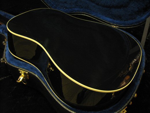 迫力の鳴り!アディロンダックスプルーストップのJ-45、人気のエボニーブラックです。2012年製ですが早くも超美品のUSEDが入荷しました!ほとんど弾かれてない様子で、サウンドはまだ若干若い気ががしますが、弾き込めば素晴らしいギターになっていきそうなポテンシャルを感じます。’60年代の復刻版になりますのでアジャスタブルサドルが標準なのですが、このモデルは牛骨ノーマルサドルでストレートな響きを体感出来ます。新品をご検討の方も是非注目して下さい!!オリジナルハードケース付き