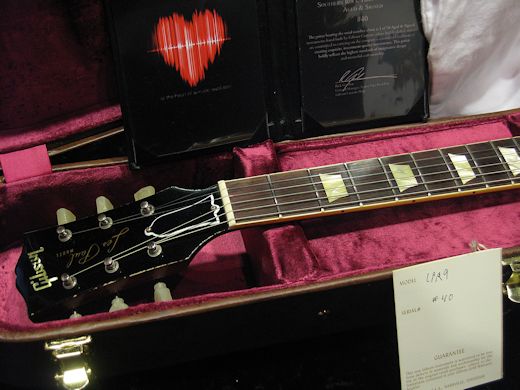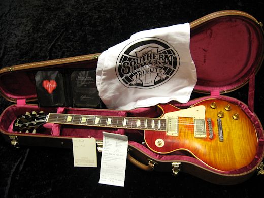 世界限定50本の激レア品!The Southern Rock Tribute 1959 Les Paul Aged & Signed入荷しました。ディッキー・ベッツやゲイリー・ロッシントンはじめサザンロックの錚々たる面々がこのプロジェクトに参加、ヴィンテージギター・エキスパートであるロニー・ブローラーのコンサルティングにより誕生したモデルです。ボディバックにサイン入りの貴重な1本です!!ウエイト3.80㎏。オリジナルハードケース付き