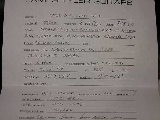 2009 SHOW MODEL 超クールな限定仕様!ボディはアルダーのチャンバー構造になっておりウエイトはなんと2.98Kg。その他スペックは画像の仕様書でご確認下さい。コンディションは新品同様です。