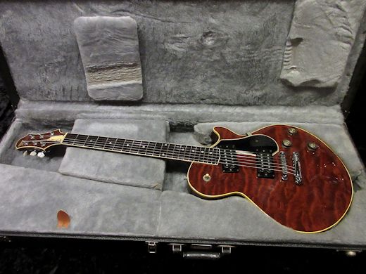 レアー!音最高です。スティーブンスModel LJ入荷しました。オークランドに工房を構え、ベイエリアギタリスト御用達のギターリペアーマンとしてスタートし、その後フェンダーへ入社しジョンペイジらと共にFender Custom Shopの設立メンバーとしても活躍、90年代初頭にフェンダーを退職後はオースティンにてスティービー兄弟やエリックジョンソン等名だたるギタリストのリペアを行いつつ、自身のシグネチャーブランドをスタート。今回入荷分は初期の1993年製、フラッグシップモデルのLJ。ボディトップは一枚板のフレイムドマホガニー、チャンバードボディのサイドバックにも同様の極上マテリアル、ヘッド突板、指板はハカランダという超豪華スペック。芯の太いトーンはセミアコのニュアンスもあり最上級のサウンド、また両ピックアップのコイルタップも可能です。めったに出てこない至高の1本!!お見逃しなく!!ウエイト3.92㎏。オリジナルハードケース付き
