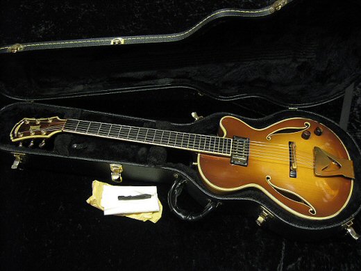 アーチトップギターの名工ロジャー・ボリスギターが入荷しました。レスポールほどのボディサイズで弾き易さは抜群です。ラミネイトトップ、メイプルサイドバック。ナットワイズ44.0mm 628スケール。甘く、ウォームな音色が魅力です。ウッドブリッジ、ハードケース付属