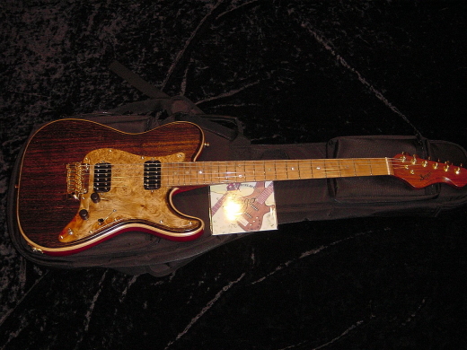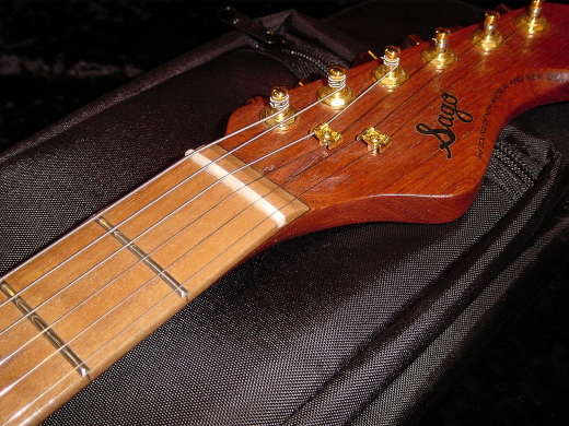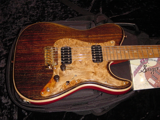 サゴーギターズSTLの入荷です。ライトアッシュ2Pボディ、トップにはマッカーサーエボニーにゴールドフレイクが散りばめられており、この異色の組み合わせからは立ち上がりの鋭い輪郭のはっきりしたサウンドが放たれます。ネック材はパドゥーク、指板にフレイムウォルナット。さらにピックガードには希少材ホワイトバールが採用されています。PUはオリジナルヴィンテージでタップシングルのサウンドが特にお勧め!新品でメーカー永久保証付きです。